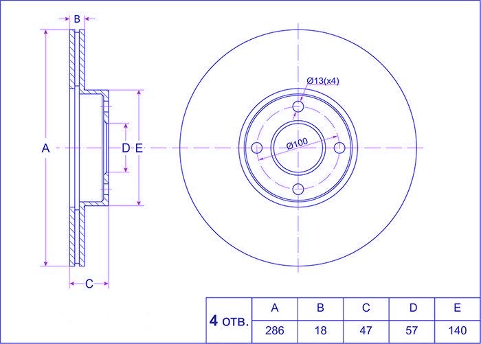 Диск тормозной /передний /TI-GUAR для Nissan MARCH, MICRA K11 1998-2002; 286/18мм; TG-40206-72B00; (PD3218214S) 26273 0986479354 09A91910